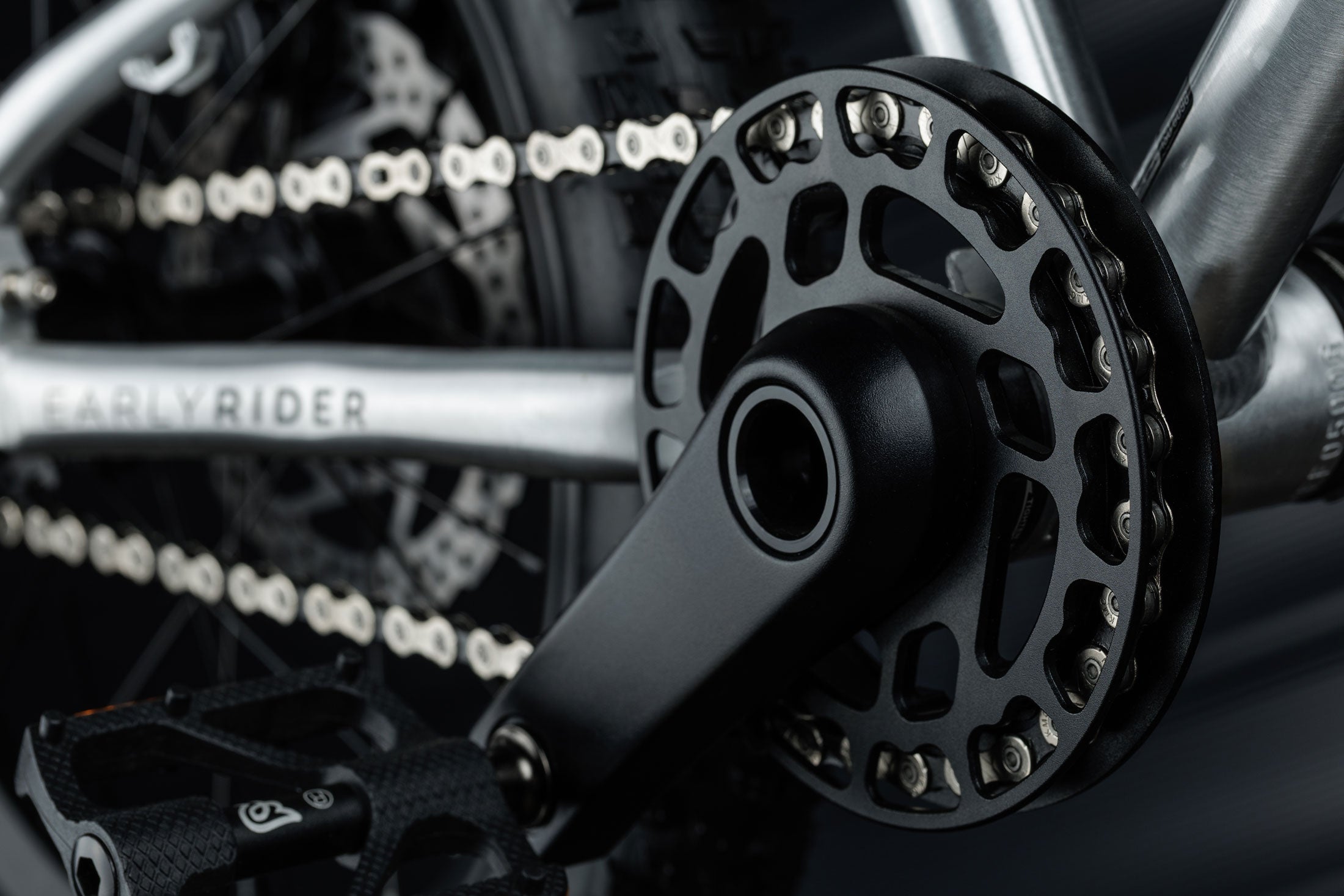 Narrow wide chain teeth stop the chain from flapping and slipping and work in harmony with shortened 90mm cranks for pedalling efficiency.