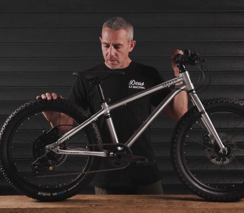 Seeker is the go-anywhere, do-anything bike in our range of kids mountain bikes. With a lightweight aluminum frame, trail-tuned geometry, and 2.25” all-terrain tires, it’s built to handle dirt, gravel, and the ride to school—all without the weight or complexity of suspension.