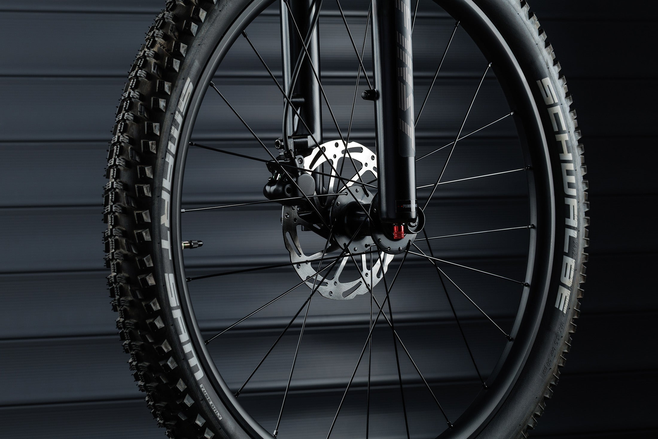 The optimised spoke count means you won’t have to worry about buckled wheels while thru axles makes the rare times you do need to swap tyres a breeze.