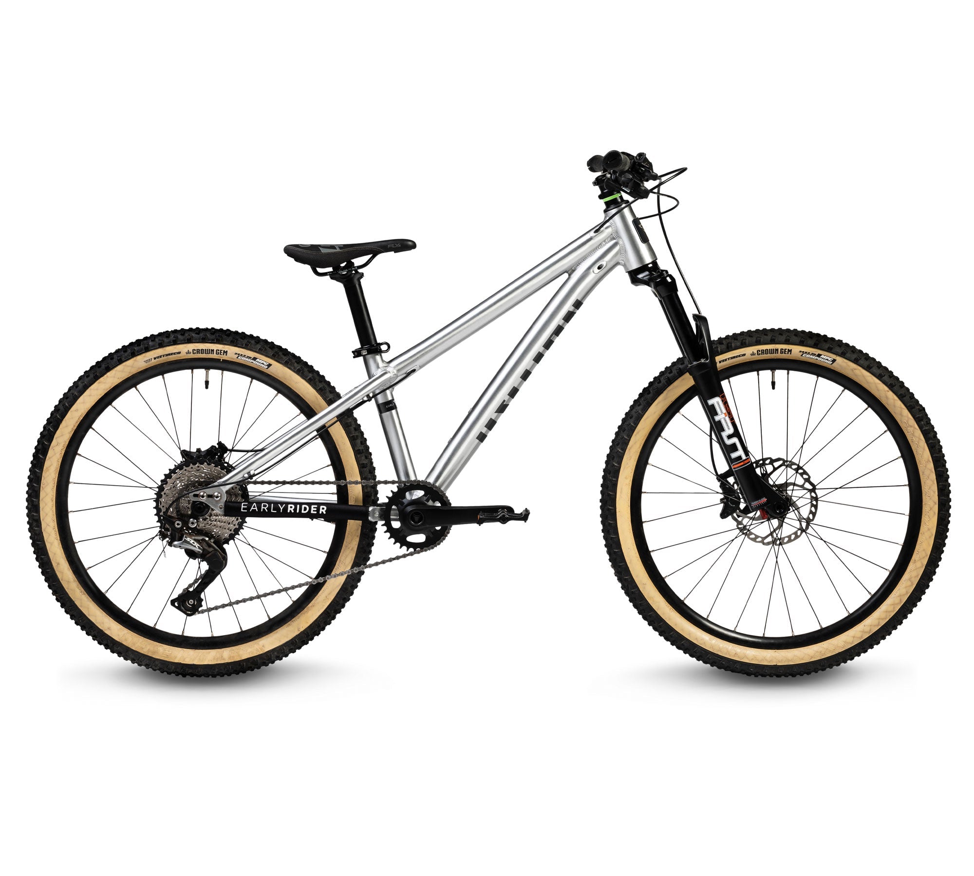 This bike is perfect for young shredders. My daughter did her first laps in the bike park and loves it. Everything is perfectly curated for a kids' demands. The jump from the 20" Seeker to the 24" Hellion is a little high. Right now she still has trouble getting her feet down on the ground but luckily kids keep growing and this shouldn't be an issue anymore in a few weeks.