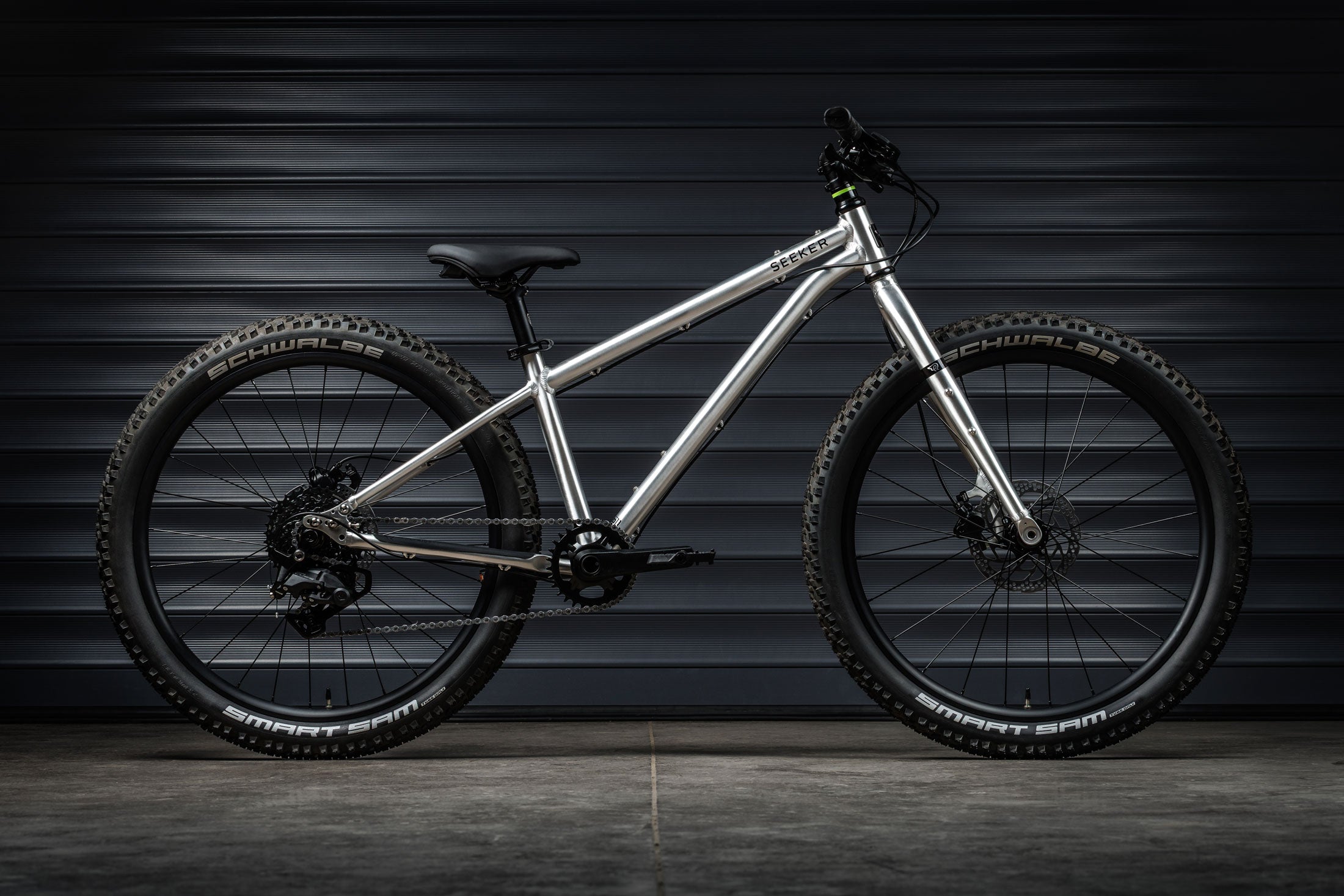 The Seeker 24 is light and responsive thanks to the 6061-grade aluminium we spec all our bikes with. While the sliding dropouts give youth riders adaptable handling as they progress.