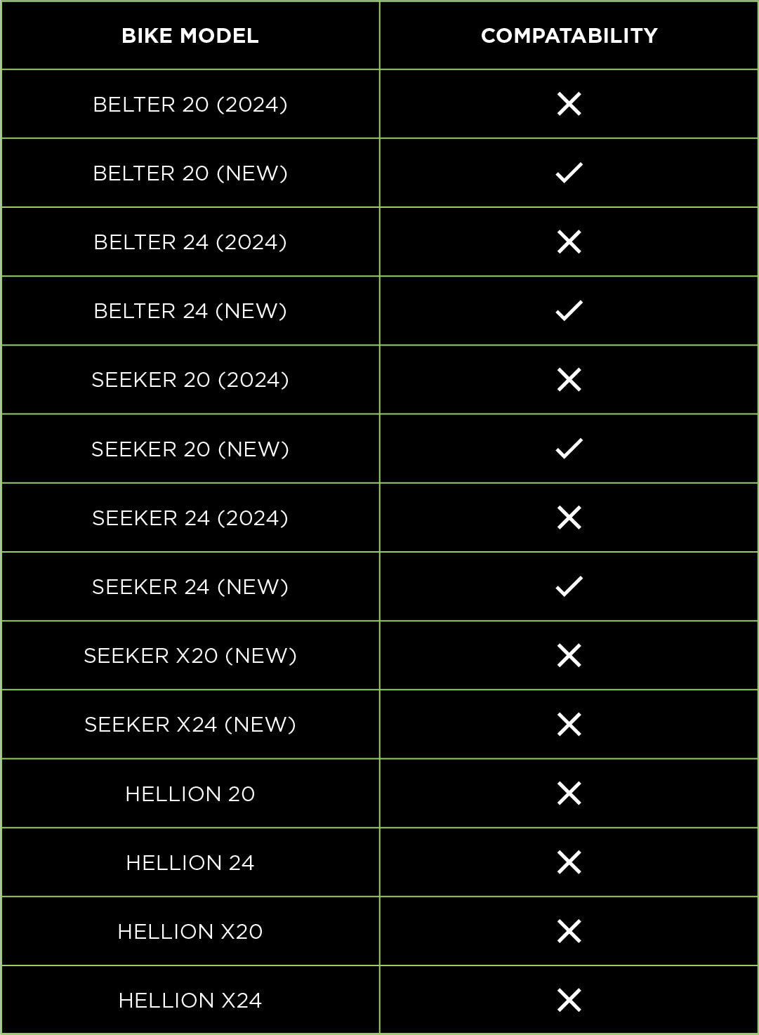 - Fits all 2025 and 2026 model year 20/24" Seeker and Belter that have the direct mount on the chainstay*