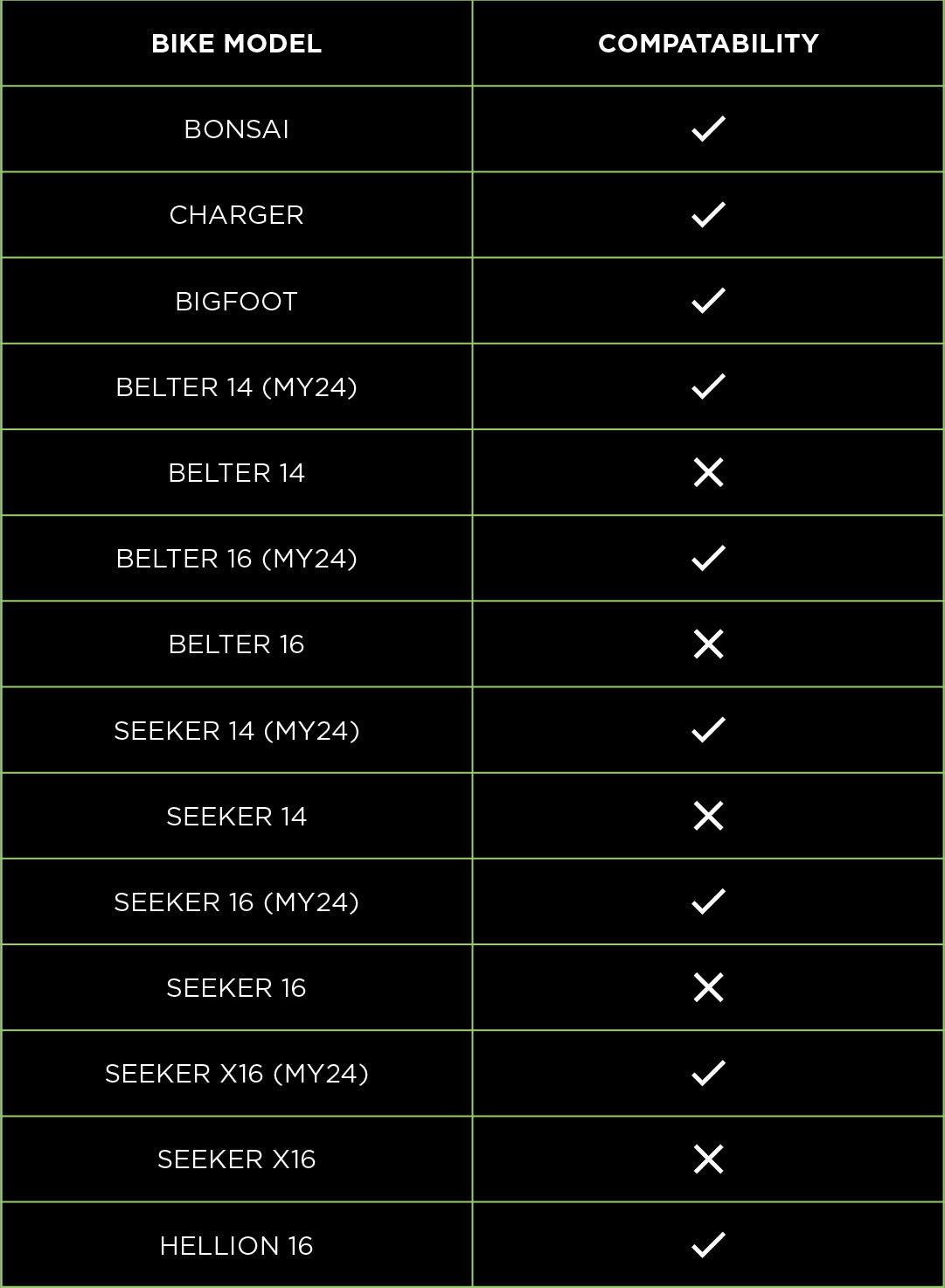 • Fits 14", 16" bikes, Big Foot 12, Charger 12, Bonsai